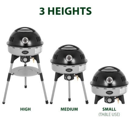 Универсална употреба: Лесно превключване между маса-грил и стоящ грил чрез бързо поставяне и сваляне на краките – без инструменти