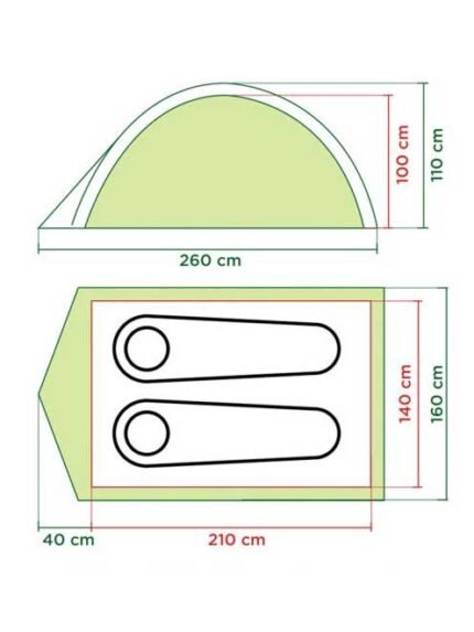 • Подът на палатката е пришит и е изработен от полиетилен с 2000 мм воден стълб