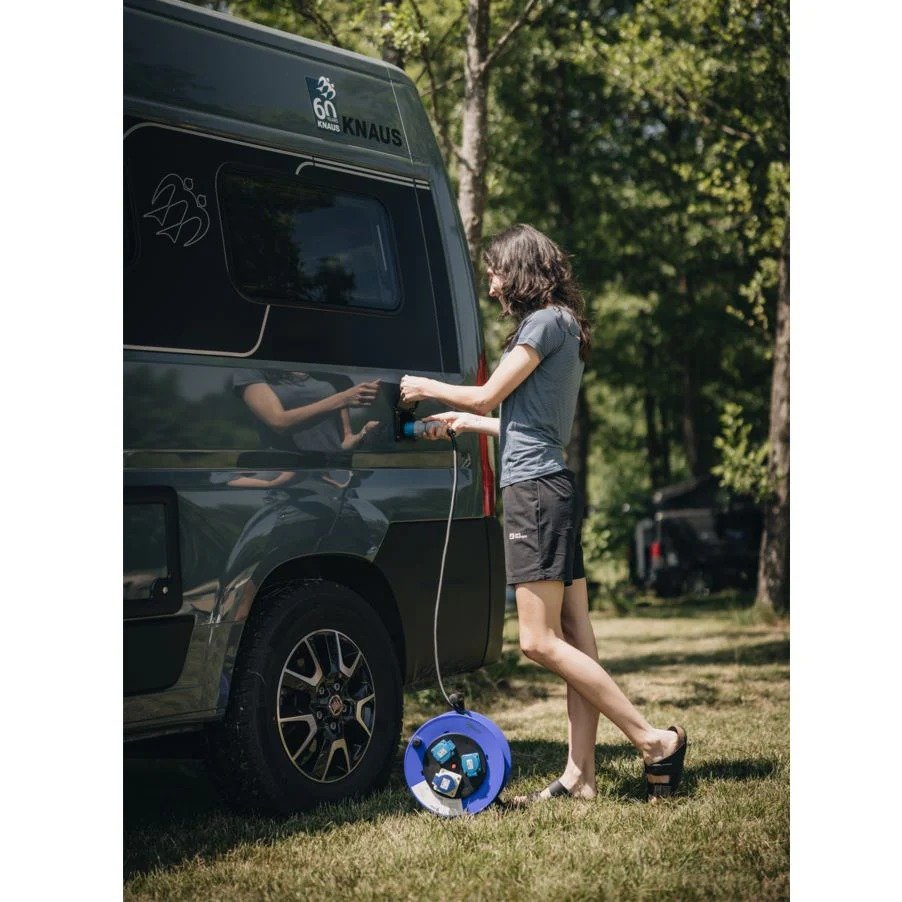 Кабелна макара Berger Expert CEE с дължина 25 метра е надеждно решение за електрозахранване при къмпинг, каравана или кемпер. Съчетава здраво изпълнение, удобство при използване и високо ниво на безопасност при работа на открито.