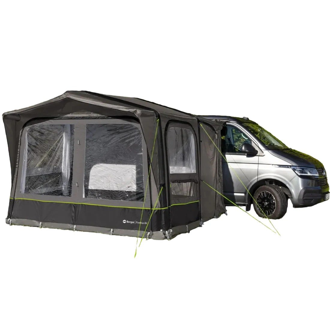 Berger Pontina Air е универсална надуваема палатка предверие, създадена за къмпинг с ван, кемпер или миниван. Тя съчетава бързо разпъване, удобство и гъвкавост, което я прави подходяща както за кратки почивки сред природата, така и за по-дълги пътувания.