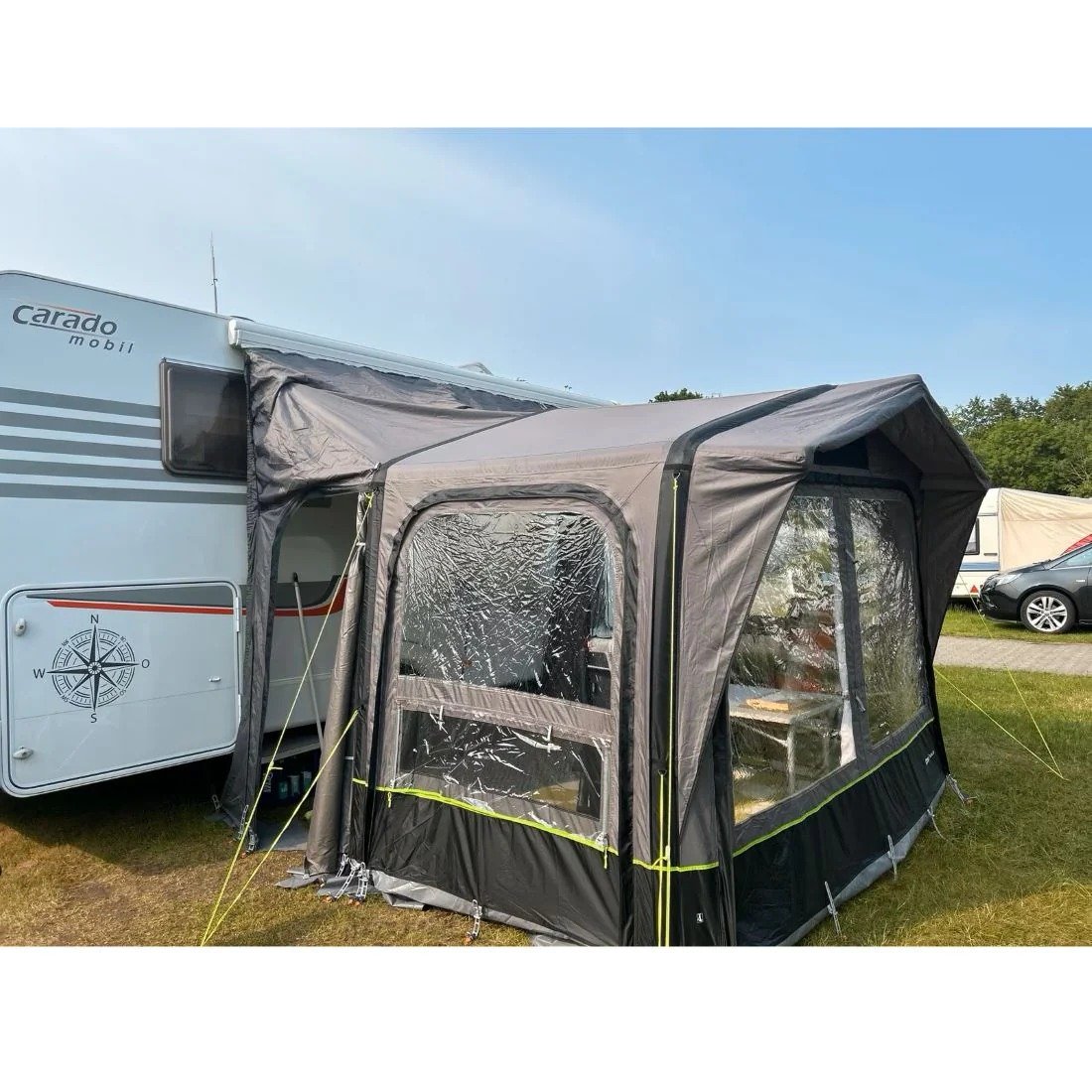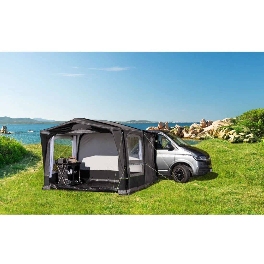 Палатката осигурява допълнително пространство за отдих и готвене, защитено от слънце и дъжд. Монтира се отстрани на автомобила чрез двойна система за закрепване. Благодарение на въздушните тръби и системата за едноточково надуване, монтажът е бърз и не изисква метални конструкции.