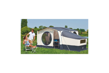 Ремаркето палатка Solena е идеалният спътник за вашите двойни пътувания. Независимо дали искате да посетите даден регион или да обиколите дадена страна, това ви гарантира легло, което е на разположение по всяко време за две минути, и е много практично за транспортиране на багажа и моторите ви. Можете да добавите допълнителна стая за настаняване на повече хора. Дизайнът му придава много съвременен щрих, можете да избирате от 2 налични цвята на ремаркето. Оборудването на Solena е много пълно: солиден твърд покрив, който може да се заключва и защитава вашите вещи по време на пътуване, след това се превръща в истински под по време на престоя ви, багажник за превоз на мотори например, и удобно легло, под което се отваря голяма площ за съхранение.